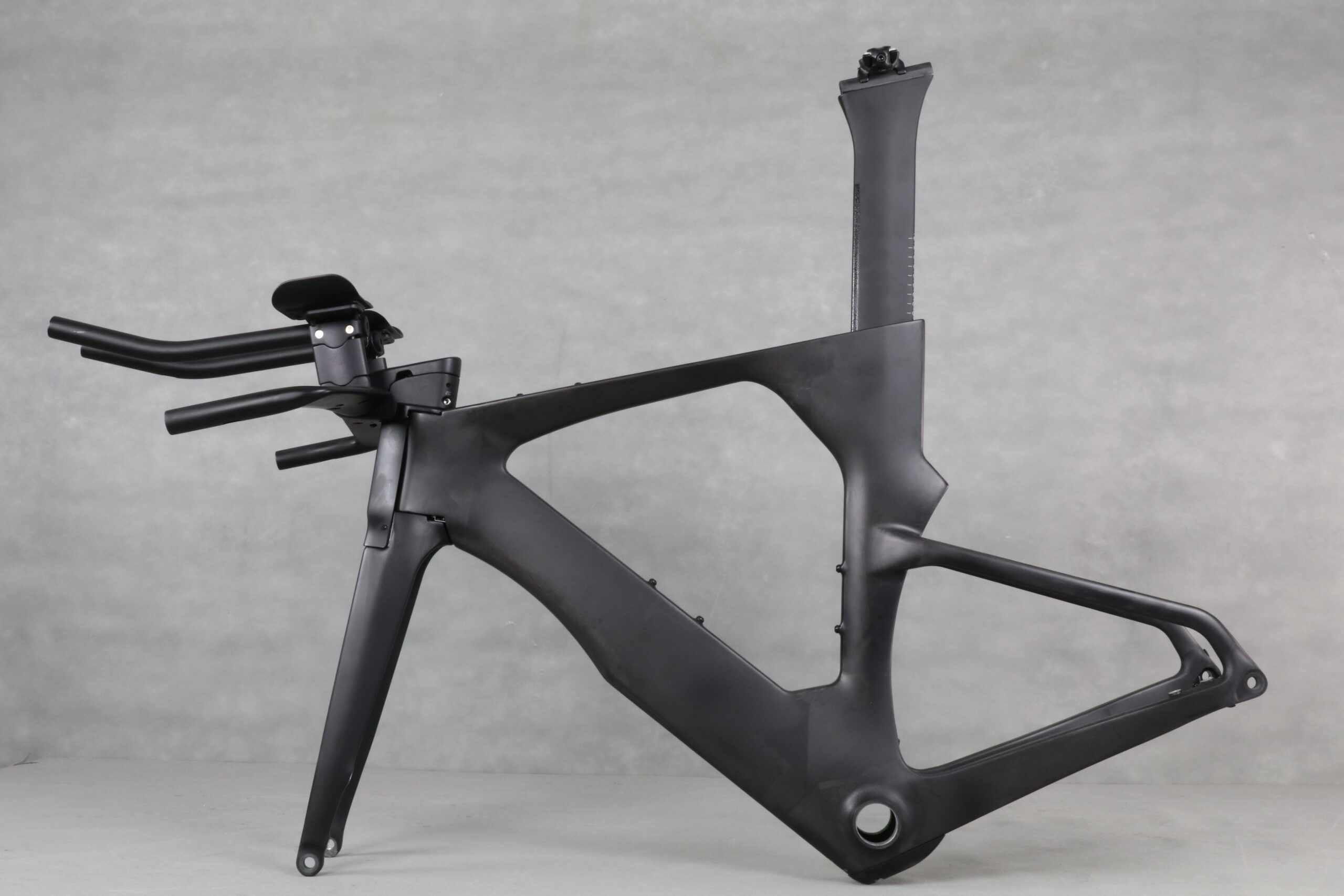Unleash your triathlon potential with the Featherweight Odyssey. This high-performance carbon fiber triathlon bike frame, designed for ultimate speed and aerodynamics, features integrated disc brakes and internal cable routing to minimize drag. Its Toray T700 carbon construction ensures durability while maintaining a lightweight profile at approximately 1333g for medium size. With a BB86 bottom bracket and compatibility for 700C x 25mm tires, the Odyssey delivers a smooth, efficient ride. Experience unmatched performance and efficiency with the Featherweight Odyssey.
